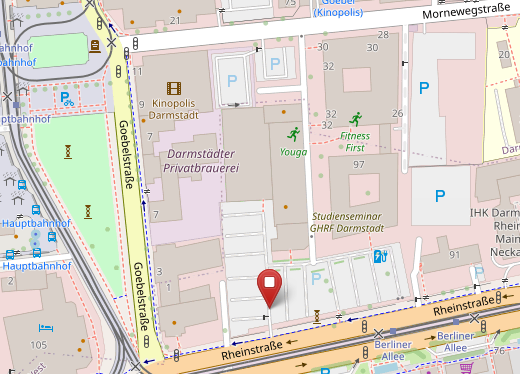Parken: 64295 Darmstadt, Rheinstraße 99, Navigation mit Google Maps